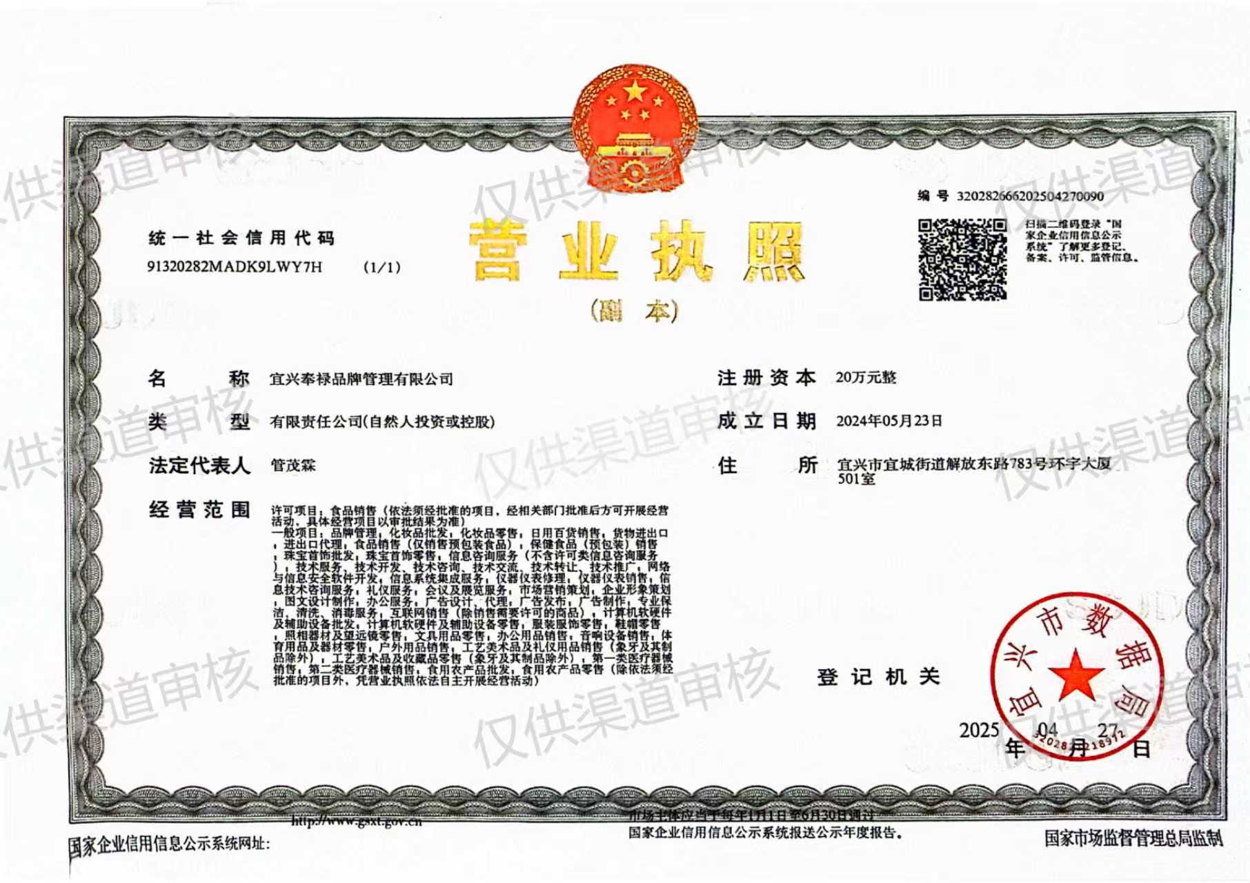 - 根据国家工商总局《网络交易管理办法》要求对网店营业执照信息公示如下: